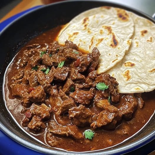 Carne Guisada with flour tortillas is comfort food at its finest—simple ingredients, slow cooking, and deep, savory flavor. Whether enjoyed at the breakfast table or for dinner, this dish delivers warmth and tradition in every bite.