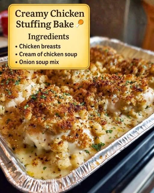 Creamy Chicken Stuffing Bake is a classic comfort dish that brings together tender chicken, rich creamy sauce, and a savory stuffing topping baked to golden perfection. This cozy casserole is easy to prepare, budget-friendly, and perfect for busy weeknights, potlucks, or family dinners.