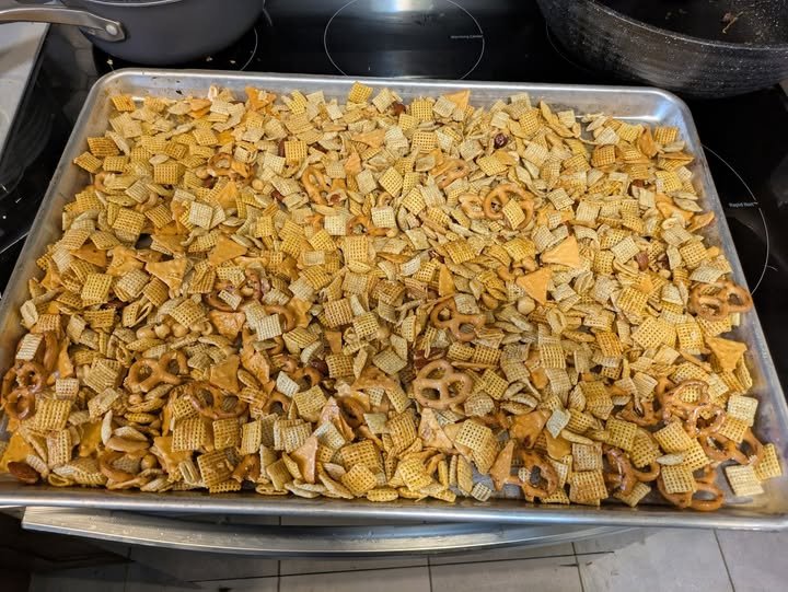 Pour seasoning over the cereal mixture and gently stir until evenly coated.