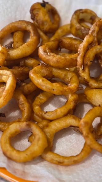 Fry each batch for 2–3 minutes per side or until the rings are golden brown and crispy.