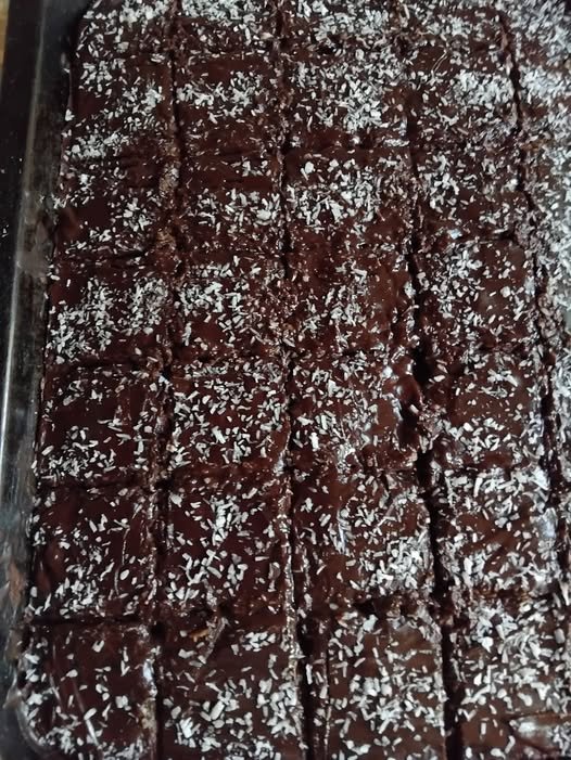 (Saftiga chokladrutor med kaffeglasyr och kokos)