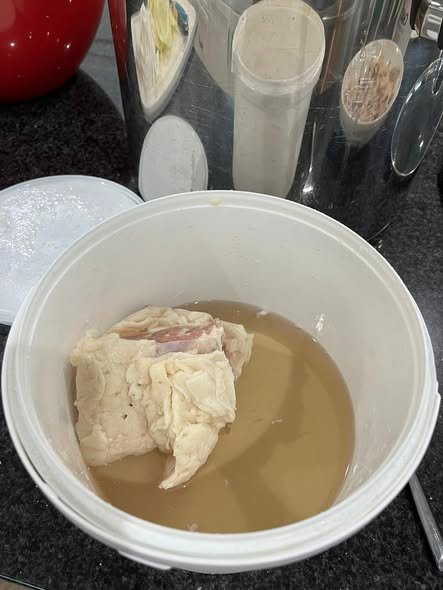 Pour the cooled brine over the beef, making sure it’s fully submerged.